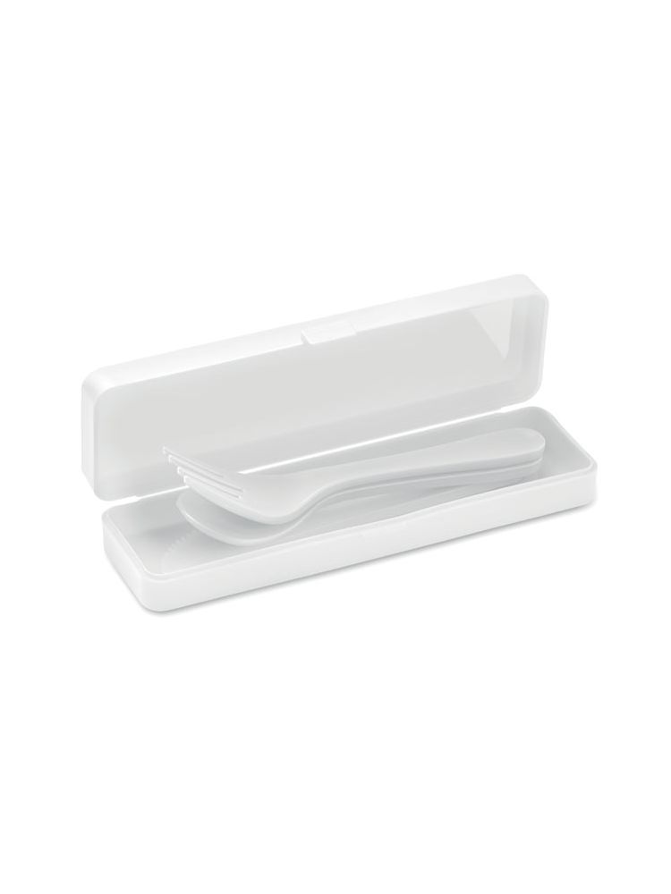 Zestaw przenośnych sztućców z PP wielokrotnego użytku i z etui. Zawiera łyżkę, widelec i nóż.