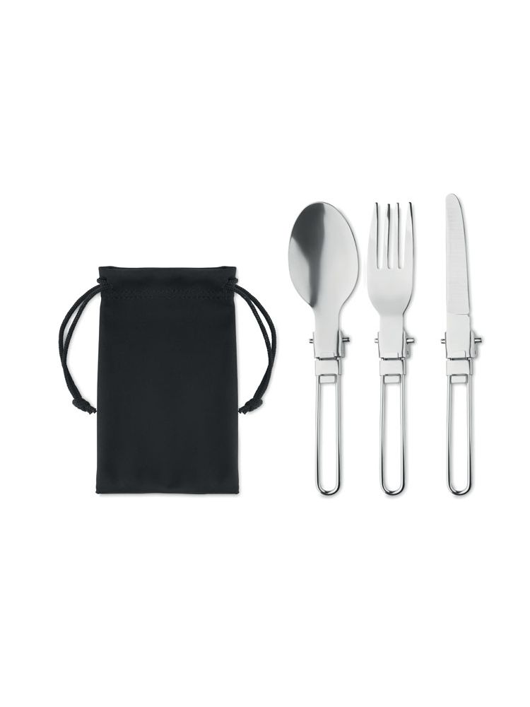 3-częściowy zestaw przyborów kempingowych ze stali nierdzewnej w etui RPET.