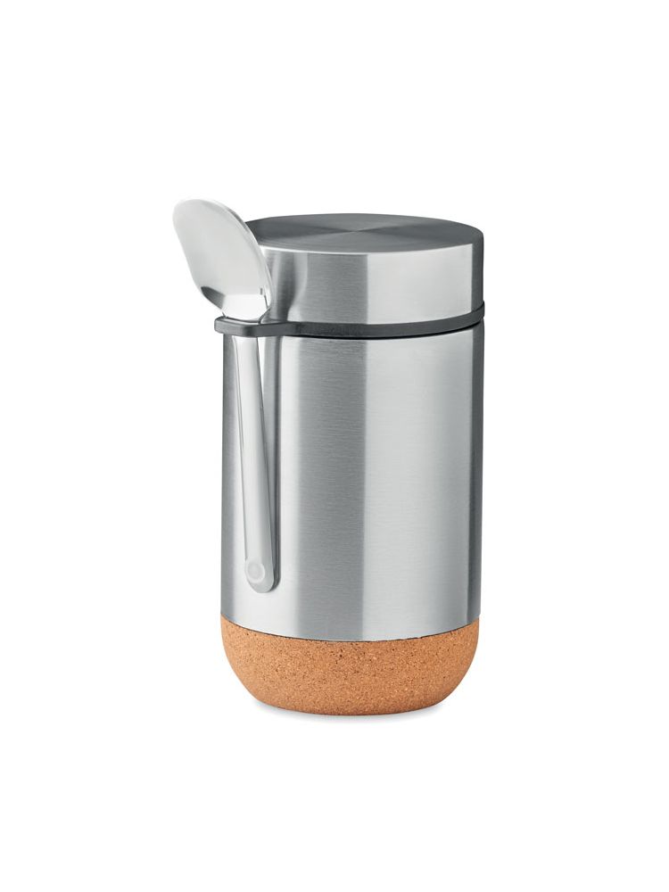 Wykonany ze stali nierdzewnej izolowany, dwuścienny pojemnik do przechowywania z zakręcanym wieczkiem i z korkowym elementem u podstawy. Zawiera łyżkę. Pojemność: 400ml. Korek jest materiałem w 100% naturalnym. Ze względu na jego strukturę i porowatość powierzchni ostateczny wygląd nadruku na każdym artykule może się różnić.