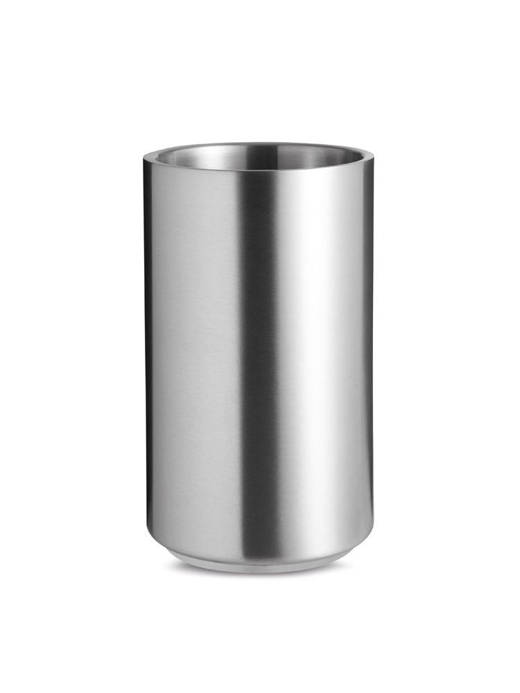 Okragły chłodzący pojemnik ze stali nierdzewnej, z podwójnymi ściankami. Pasuje do butelki wina 750ml.