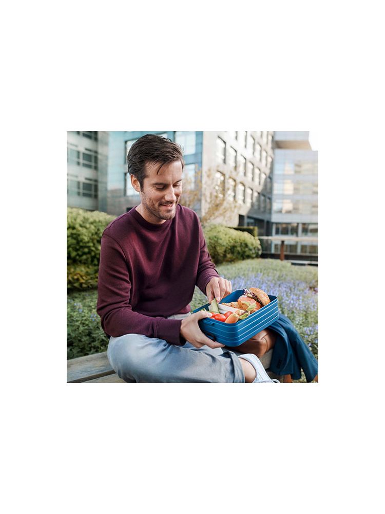 Duże pudełko na lunch z pierścieniem uszczelniającym, aby zawartość była świeża i smaczna. Może pomieścić do 8 kanapek. W zestawie przegródka. Pojemność wynosi 1,5 litra. Można myć w zmywarce. Wolne od BPA.