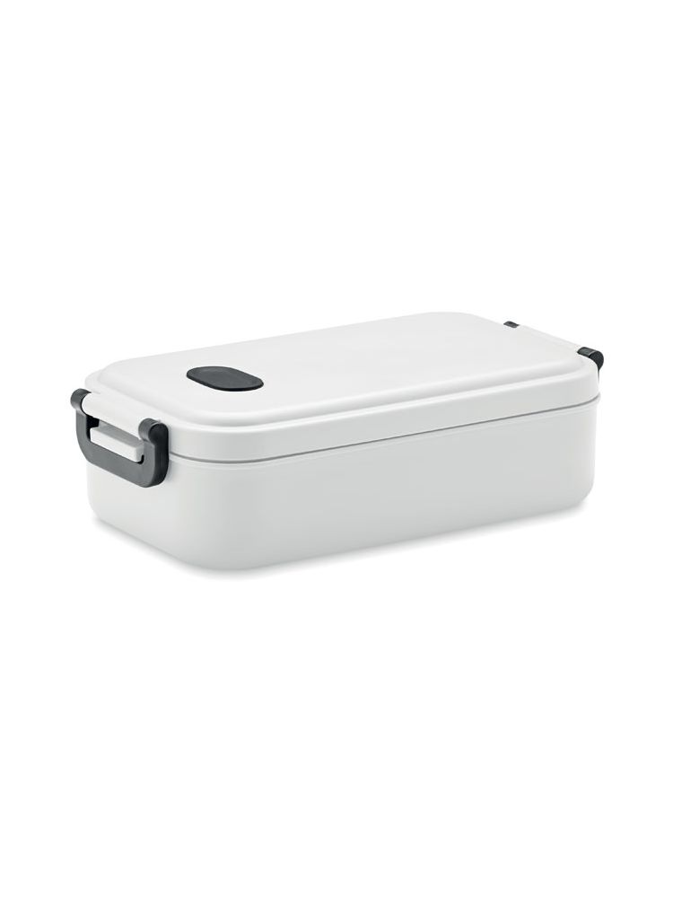Lunch box z PP ze szczelną pokrywą, silikonowym zaworem i dwoma bocznymi klamrami. Pojemność: 800 ml.