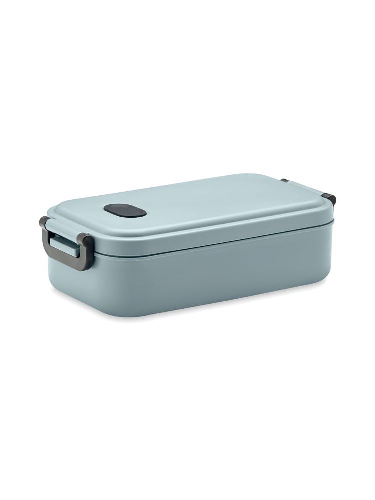 Lunch box z PP ze szczelną pokrywą, silikonowym zaworem i dwoma bocznymi klamrami. Pojemność: 800 ml.