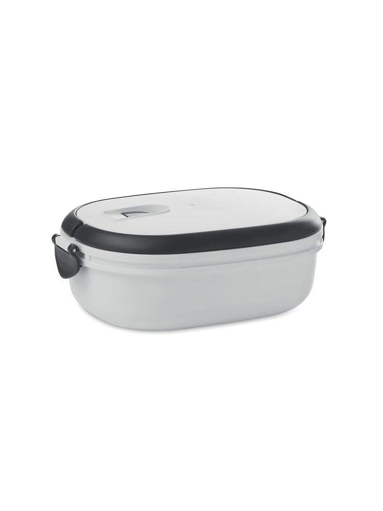 Pudełko śniadaniowe z hermetycznym wieczkiem, wykonane z PP. Nadaje się do użytku w kuchence mikrofalowej i zmywarce do naczyń. Pojemność 750 ml.