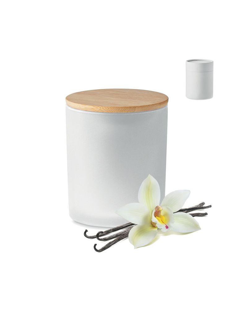 Wosk roślinny, świeca roślinna o zapachu cynamonu, wanilii, drzewa sandałowego lub jaśminu w szklanym, matowym słoiku z bambusową pokrywką. 280 gr. Czas palenia: 46 godzin. Zapakowane w papierowe pudełko prezentowe w kształcie tuby. Bambus jest produktem naturalnym, dlatego mogą wystąpić nieznaczne różnice w kolorze, wzorze i rozmiarze.