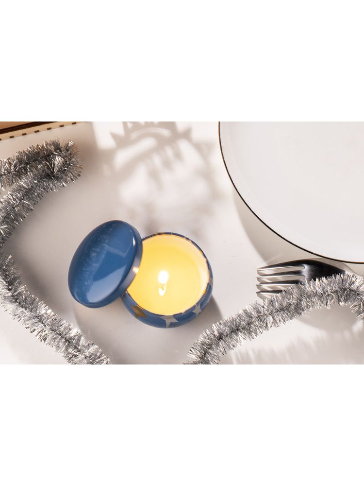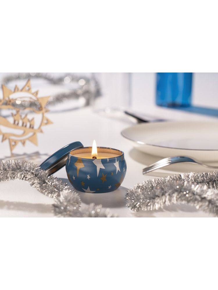 Świeca ASTRO została wykonana z naturalnego wosku sojowego o zapachu limonki, bazylii i mandarynki. Świeca w oryginalnej zamykanej puszce z nadrukiem srebrnych i złotych gwiazdek.