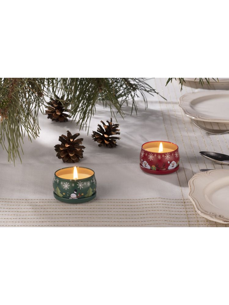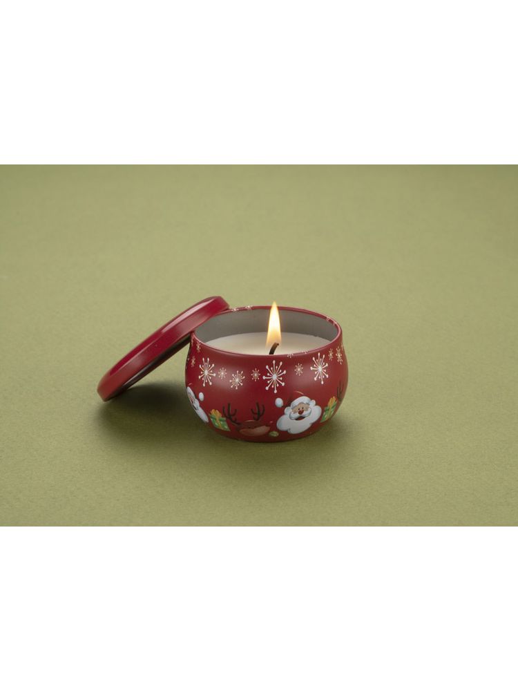 Świeca KERI z naturalnym woskiem sojowym o zapachu delikatnego rumianku. Świeca w oryginalnej zamykanej puszce z nadrukiem świątecznym.