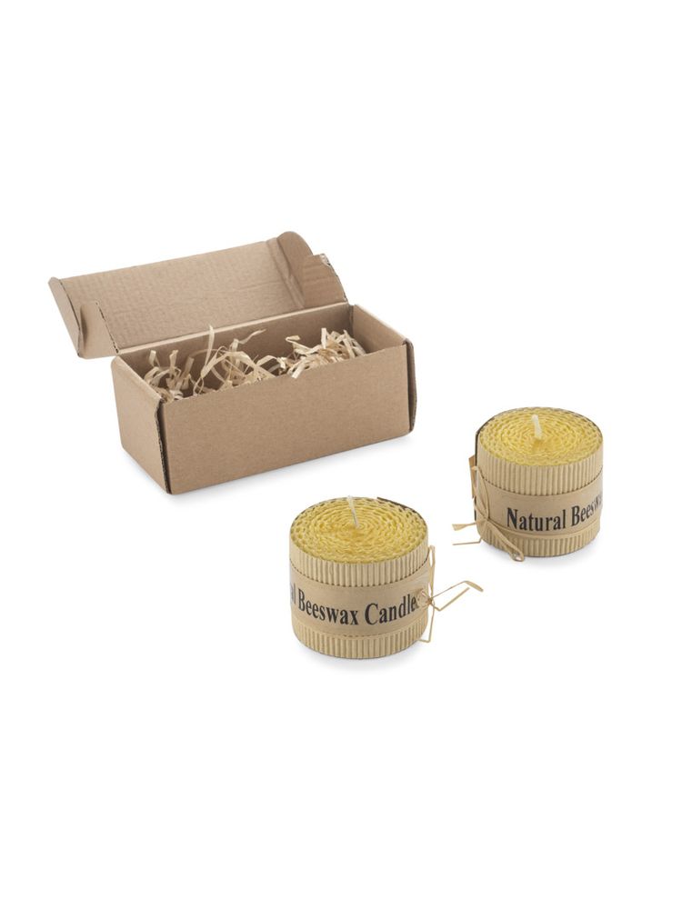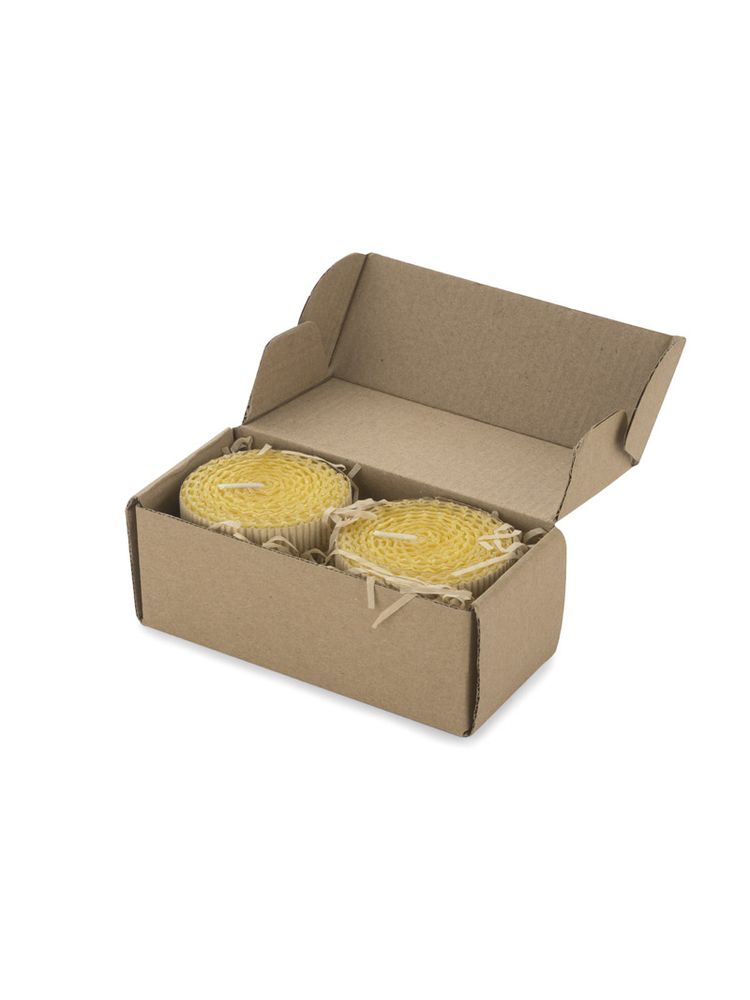 Zestaw 2 świec wykonanych z naturalnego wosku pszczelego to idealny upominek dla osób ceniących romantyczny nastrój w wersji eko. Świece spakowane w kartonik z tektury wypełniony ozdobnym siankiem ekologicznym. Każda świeca ozdobina kokardą z rafii.