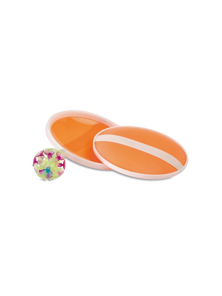 Zestaw do gry zawierający jedną piłeczkę z przyssawkami i dwie paletki z powierzchnią do łapania. Gra działa najlepiej latem, przy wyższych temperaturach i w wilgotnym środowisku.