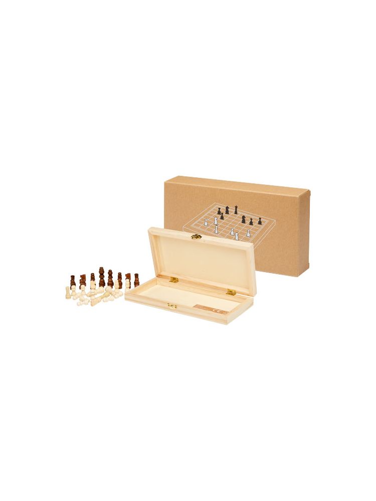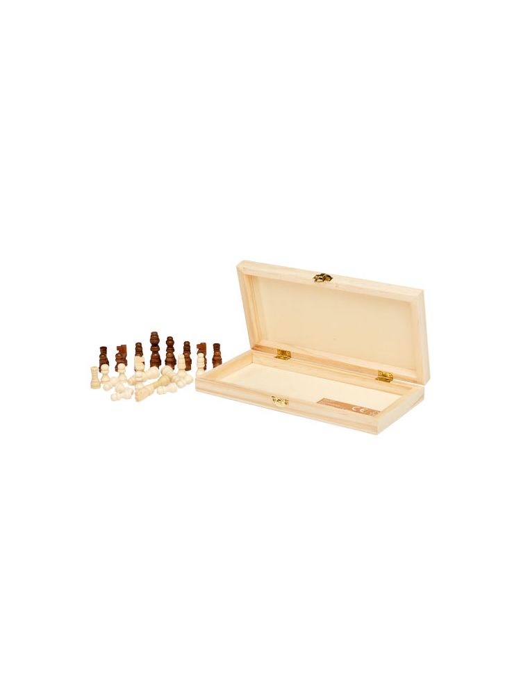Ciesz się intelektualną stymulacją, jaką zapewnia gra w szachy w dowolnym miejscu dzięki zestawowi szachowemu King. Zapewniając idealne połączenie przenośności i elegancji, ten zestaw zawiera 32 figury szachowe w kolorze brązowym i kości słoniowej, które są pięknie wykonane z odpowiedzialnie pozyskiwanego drewna sosnowego. Składana drewniana szachownica umożliwia wygodne przechowywanie i transport. Solidne metalowe zawiasy i zamek zapewniają, że zestaw szachowy jest cały czas bezpieczny i chroniony. Dostarczany z pudełkiem upominkowym z papieru kraft i instrukcją obsługi. Ostrzeżenie! Nieodpowiednie dla dzieci poniżej trzeciego roku życia. Małe części. Ryzyko zadławienia.