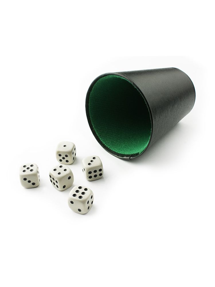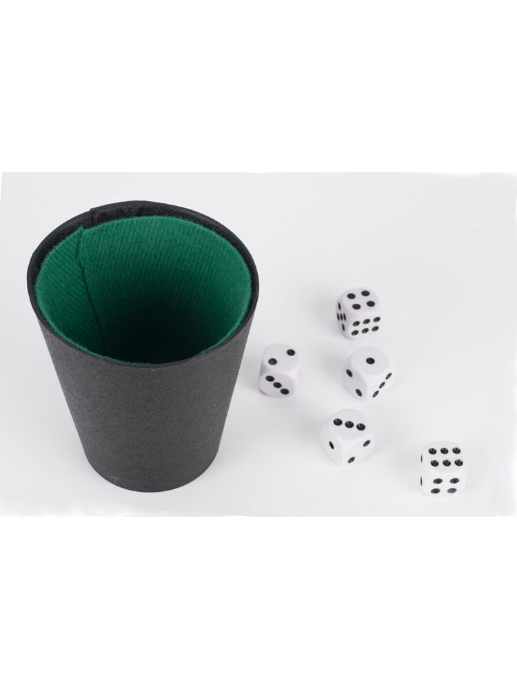 Zestaw składający się z 5 kości oraz kubeczka wykonanego z ekoskóry. UWAGA – Kubeczek posiada pęcherze i ślady kleju. Reklamacji na to nie przyjmujemy.