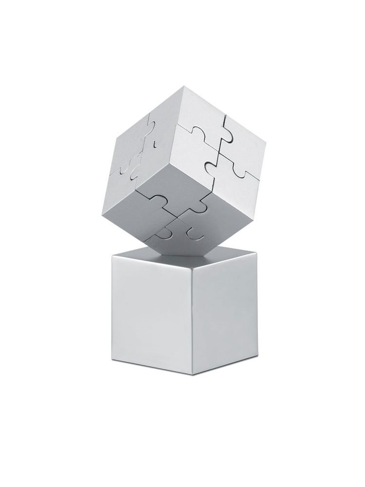 Metalowe puzzle 3D magnetyczne i antystres. Może również służyć za przycisk do papierów.