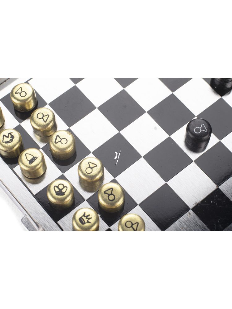 Niewielki rozmiar znakomicie sprawdzi się podczas podróży czy wypoczynku na plaży. Zamocowany w pionkach magnes zabezpiecza przed przypadkowym przewróceniem figur w czasie gry oraz zgubieniem ich. Całość wykonana jest z aluminium.