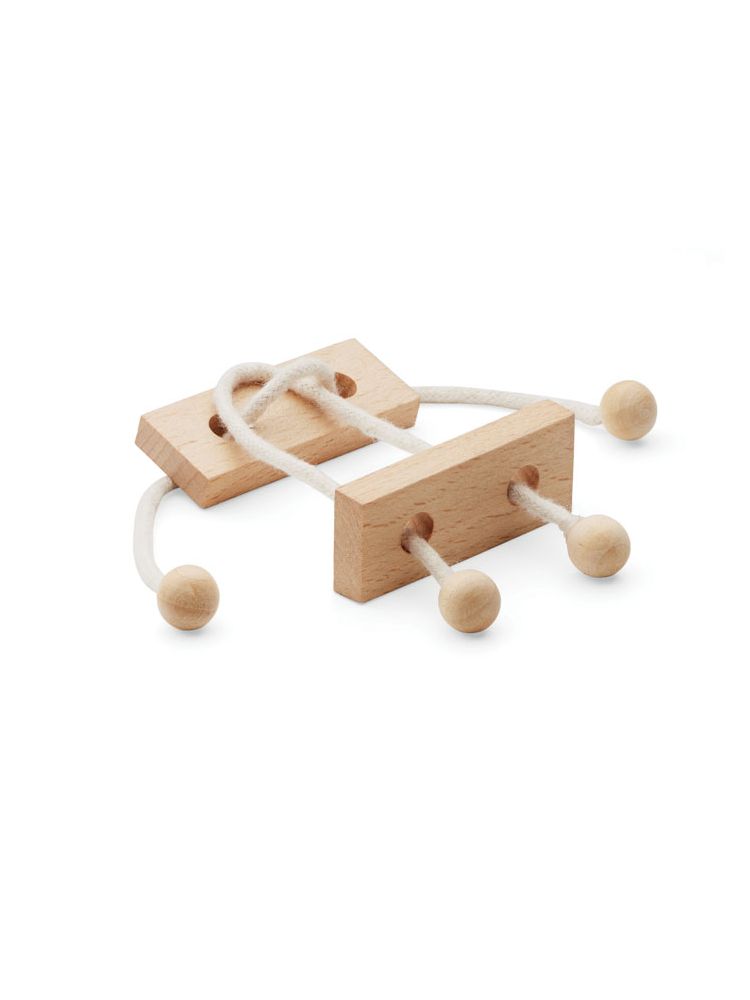 Drewniana łamigłówka w kształcie prostokąta. Prezentowana w papierowym pudełku z recyklingu. Drewno jest produktem naturalnym, dlatego mogą występować niewielkie różnice w kolorze i rozmiarze poszczególnych elementów, co może mieć wpływ na ostateczny efekt zdobienia.