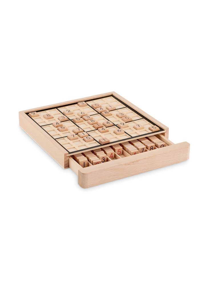 Drewniana plansza sudoku Deluxe. Zawiera 99 ponumerowanych drewnianych płytek. Instrukcja do gry, zagadki i rozwiązania.