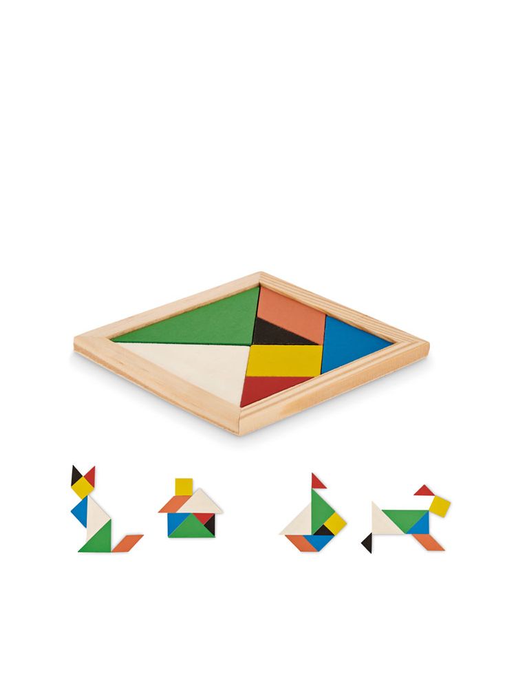 Kolorowa drewniana gra logiczna tangram. 7 elementów.