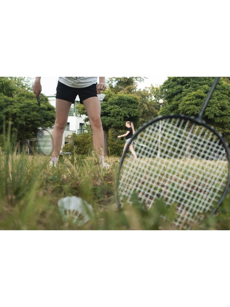 Badminton to atrakcyjny towarzysko i łatwy do nauczenia sport. Idealny zarówno dla dzieci jak i dla dorosłych. Zestaw składa się z dwóch rakietek i lotki. Zapakowany w czarne etui z dołączonym paskiem do przenoszenia na ramieniu.