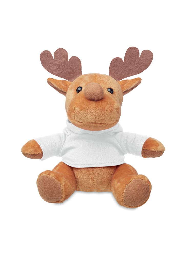 Pluszowy renifer w zdejmowanym swetrze z kapturem.