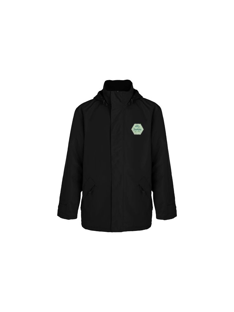 Ocieplana kurtka wodoodporna. Centralny zamek błyskawiczny z dopasowaną klapką. Wysoki kołnierz ze składanym kapturem. Kieszenie boczne z zamkiem błyskawicznym i klapką. Regulowane mankiety z paskami. Dwie wewnętrzne kieszenie zapinane na rzep. Wewnętrzny zamek błyskawiczny z dekoracją. Wodoodporna. Wiatroszczelna.
