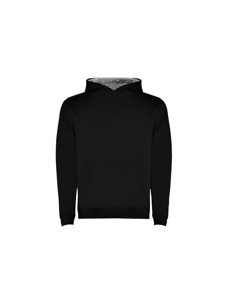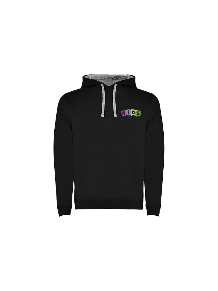 Dwukolorowa bluza z kapturem z podwójnego materiału. Wzmocnione kryte szwy w kołnierzu i kieszeń kangurka. Ściągacze 1×1 z elastanu w mankietach i pasie. Usuwalna metka.