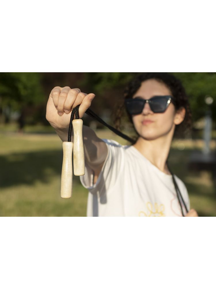 Skakanka jest jednym z tych przyrządów którym zainteresowanie nie słabnie. Skakanie na skakance sprawdzi się jako rozgrzewka, część główna treningu a także może posłużyć do zabawy. Jest to produkt idealny dla dorosłych jak i dla najmłodszych. Skakanka posiada drewniane rączki a linka wykonana jest z poliestru.