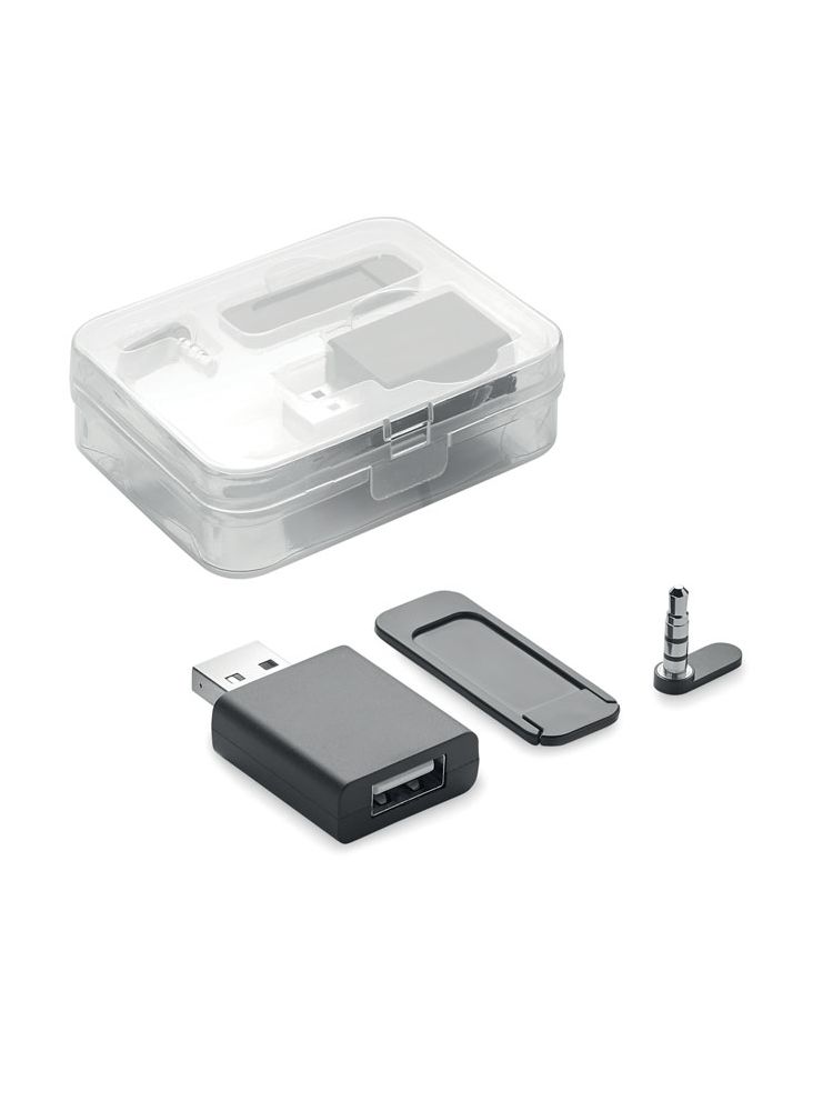 Zestaw w etui z PP z blockerem kamery internetowej, danych i dźwięku.