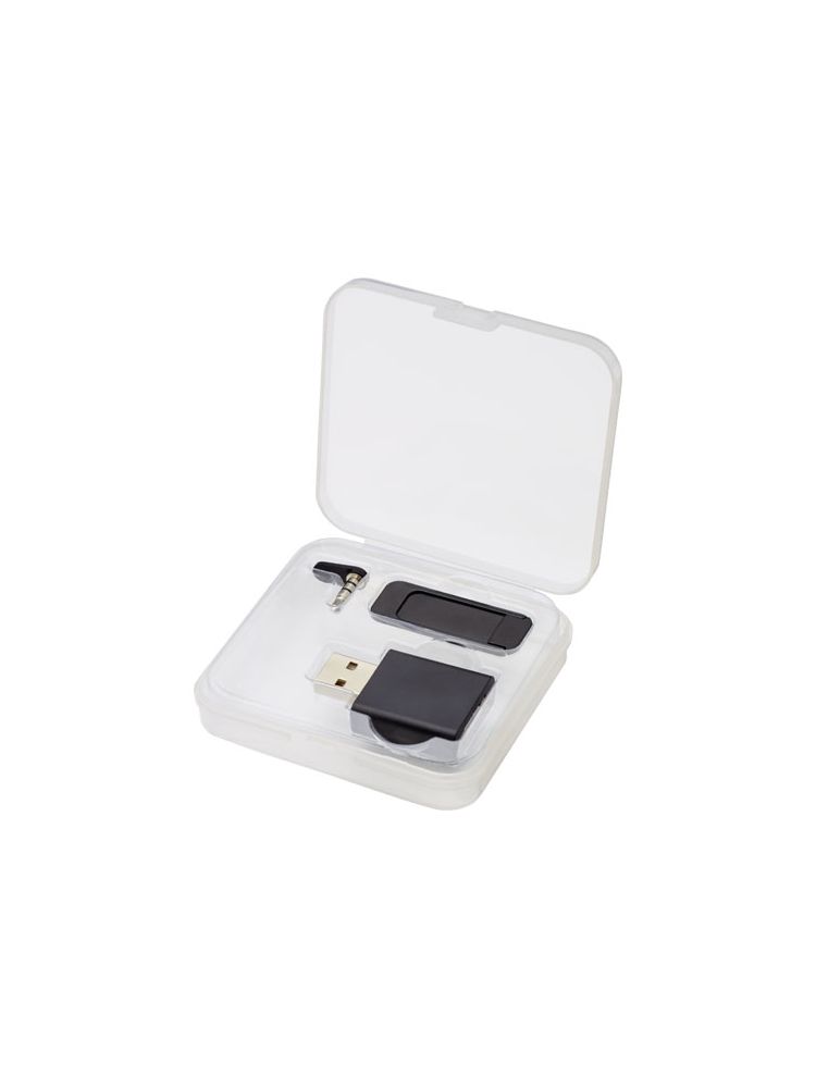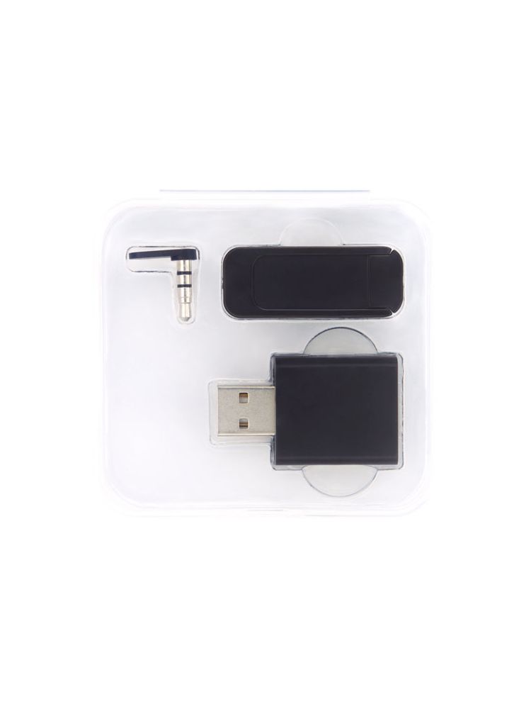 Zestaw do ochrony prywatności cyfrowej zawierający blokadę transferu danych USB, blokadę kamery internetowej i blokadę gniazda audio. Blokada transferu danych USB zapobiega przypadkowej wymianie danych podczas podłączania urządzenia mobilnego do komputera lub publicznej stacji ładowania. Przedmiot ten blokuje transfer danych podczas ładowania urządzenia, zapobiegając kradzieży danych lub instalacji złośliwego oprogramowania. Blokada kamery internetowej może być zamocowana przed kamerą internetową laptopa, aby zablokować niechciany dostęp do kamery internetowej. Blokada gniazda audio może być umieszczona w porcie AUX urządzenia, aby uniknąć podsłuchiwania rozmów przez osoby trzecie. Dostarczane w ochronnym etui.