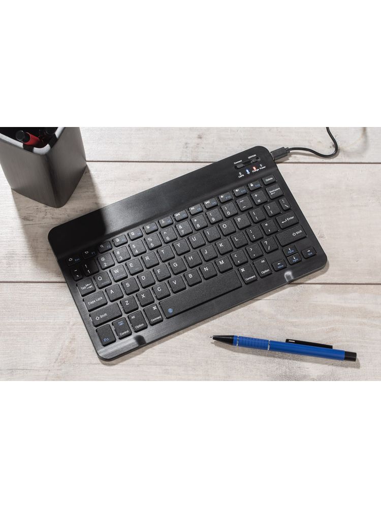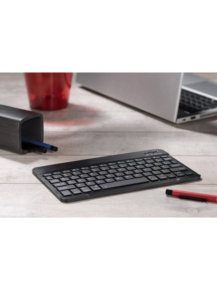 Klawiatura bezprzewodowa KEYGO, to kompaktowa klawiatura o rozmiarach zbliżonych do standardowego tabletu, co sprawia, że jest łatwa do przenoszenia i idealnie nadaje się do pracy w podróży. Niezwykle praktyczną cechą tej klawiatury jest jej długi czas działania na jednym naładowaniu, można korzystać z niej do 36 godzin. Klawiatura współpracuje z systemami iOS, Android, Windows. Połączenie za pomocą Bluetooth 3.0 umożliwi połączenie się z takimi urządzeniami, jak smartfon, tablet i laptop.