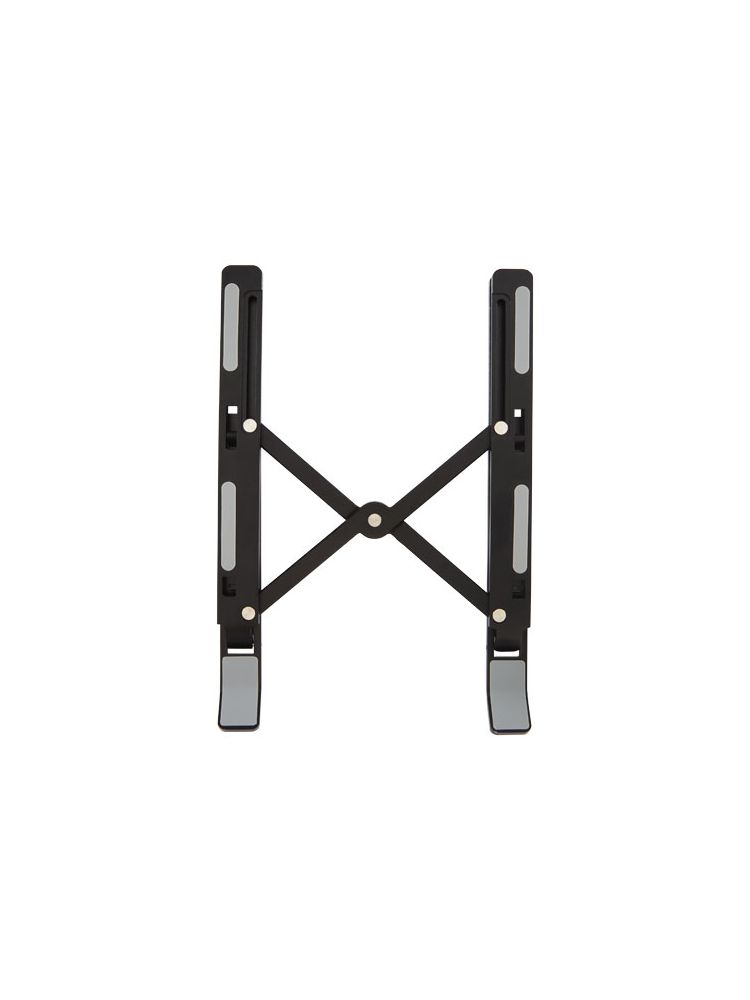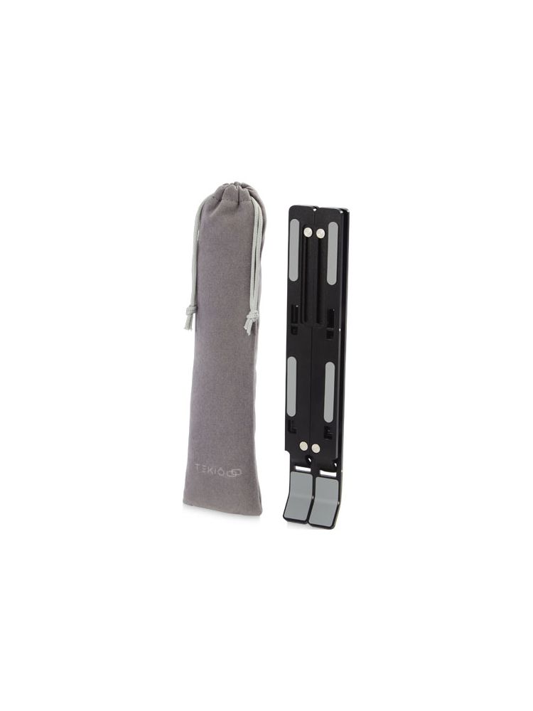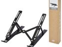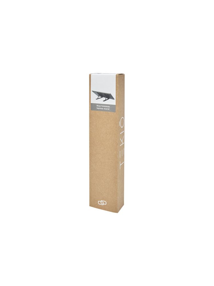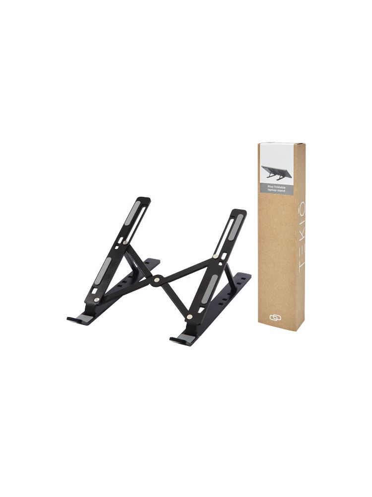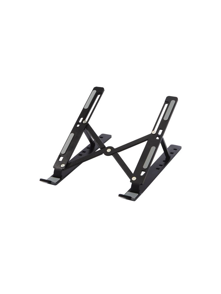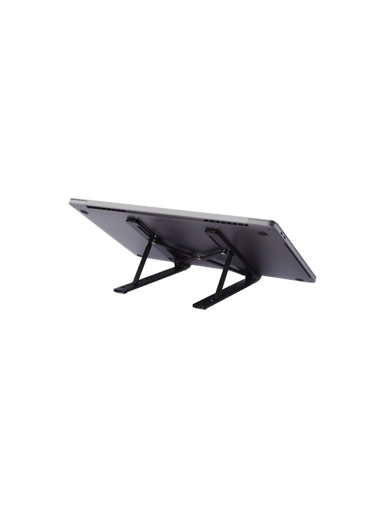 Uniwersalna, kompaktowa i składana podstawka pod laptopa wykonana ze stopu aluminium. Podstawka może być ustawiona pod 7 różnymi kątami dla zachowania optymalnej ergonomicznej postawy. Składanie i rozkładanie stojaka jest bardzo proste i można to zrobić w kilka sekund. Dno ma gumowe paski, które zapobiegają przesuwaniu się. Wyposażona jest w pokrowiec ułatwiający przenoszenie. Dostarczane w wysokiej jakości pudełku z papieru Kraft z kolorową naklejką.