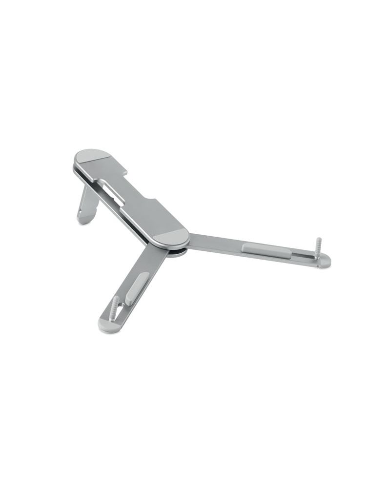 Przenośna, składana i kompaktowa podstawka pod laptopa wykonana z aluminium z antypoślizgowymi silikonowymi podkładkami. Odpowiednia dla laptopów o przekątnej 17 cali.