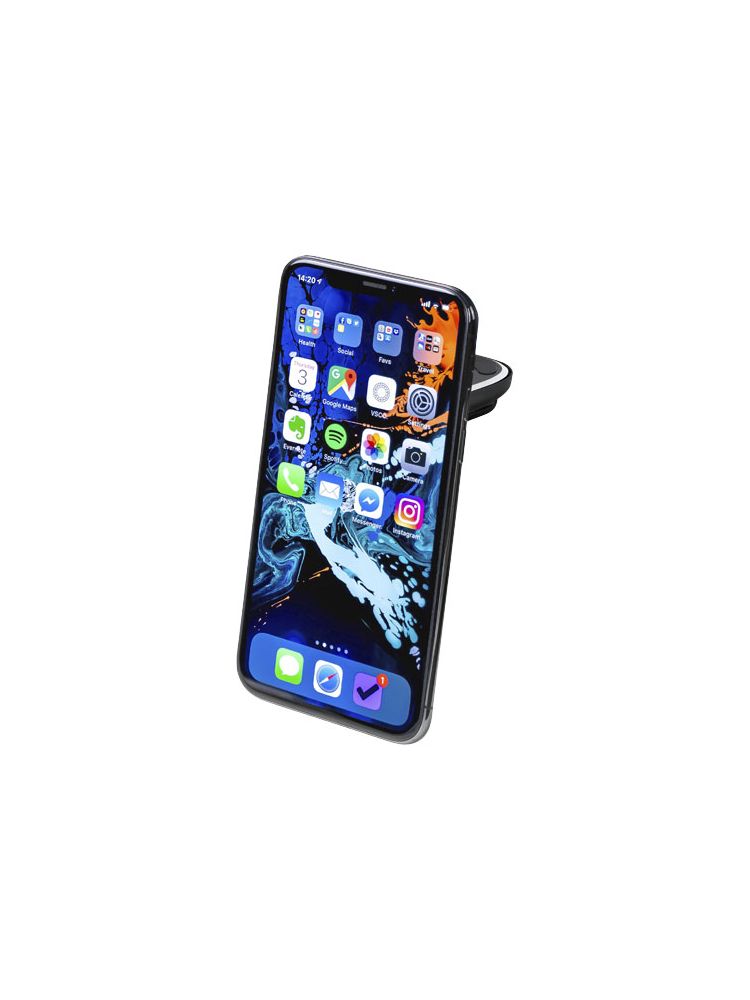 Aluminiowy magnetyczny uchwyt na telefon do samochodu. Klips można łatwo zamocować do otworu wentylacyjnego samochodu, a metalową płytkę można przytwierdzić do tylnej części telefonu lub jego etui.