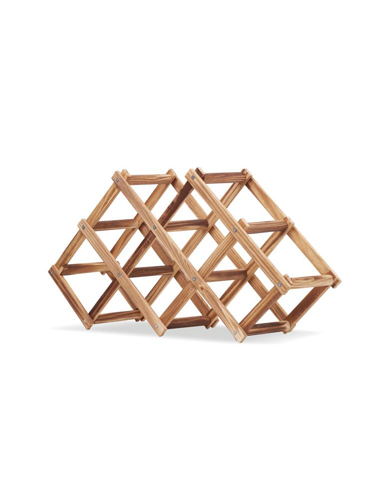 Składany stojak na wino z drewna sosnowego. Mieści do 6 butelek.