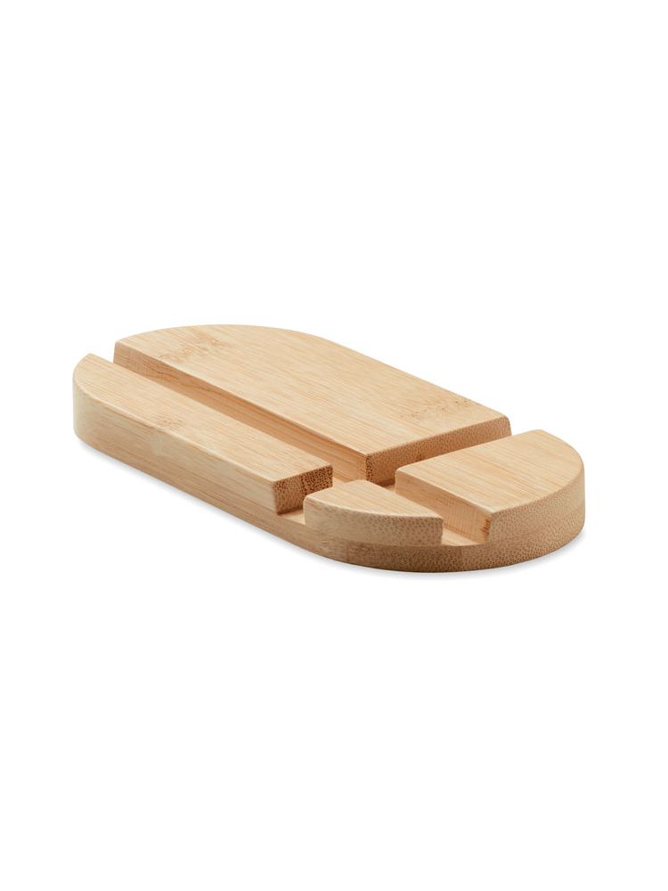 Bambusowa podstawka pod tablet lub smartfon. Ten praktyczny stojak wykonany z naturalnego materiału może utrzymać w miejscu zarówno smartfon, jak i tablet. Idealny, gdy chcesz obejrzeć film lub poczytać, bez konieczności trzymania urządzenia. Bambus jest produktem naturalnym, mogą wystąpić niewielkie różnice w kolorze i rozmiarze poszczególnych elementów, co może mieć wpływ na końcowy efekt dekoracji. FSC®-certified | FSC 100%, N5.7, FSC-C213206