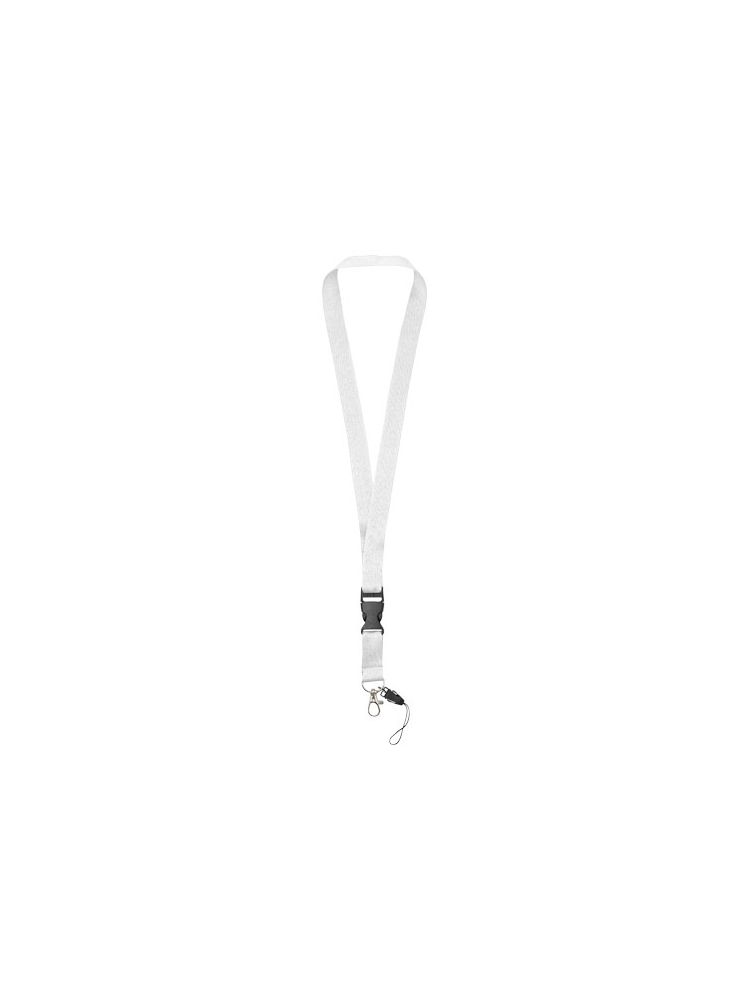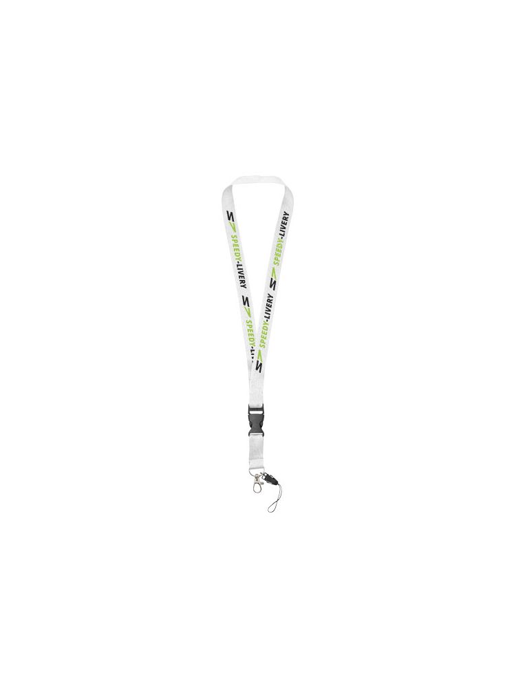 Wielofunkcyjna smycz z odczepianą klamrą, owalnym klipsem-haczykiem i uchwytem do telefonu. Idealna do przymocowania plakietki z nazwiskiem, identyfikatora lub kluczy. Dostępna w wielu kolorach, z dużą przestrzenią na logo lub hasło. Najlepszy wybór. Jeśli obie strony mają być ozdabiane tą samą grafiką brak kosztu ustawienia dodatkowego nadruku.