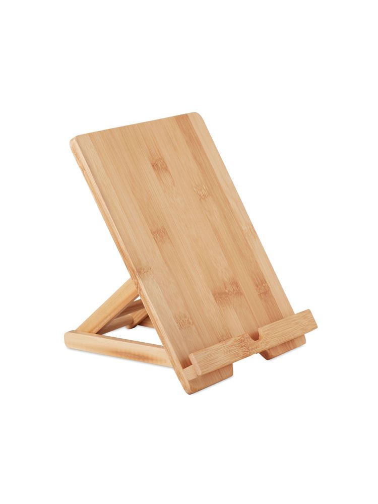 Składana podstawka pod tablet lub smartfon z bambusa. Bambus jest produktem naturalnym, dlatego mogą wystąpić nieznaczne różnice w kolorze, wzorze i rozmiarze.