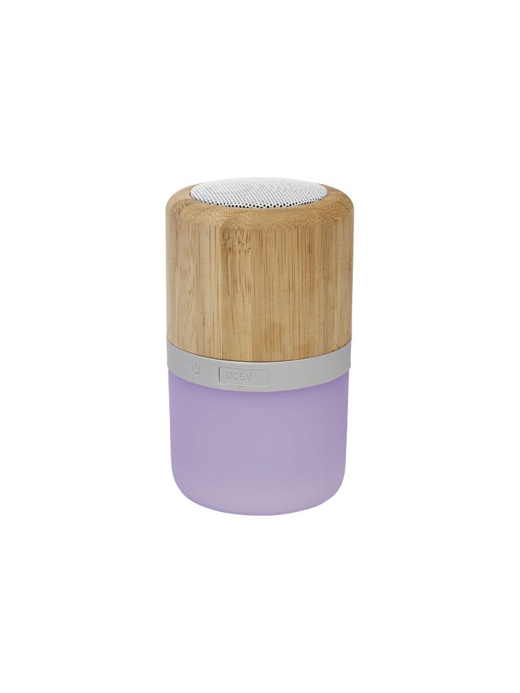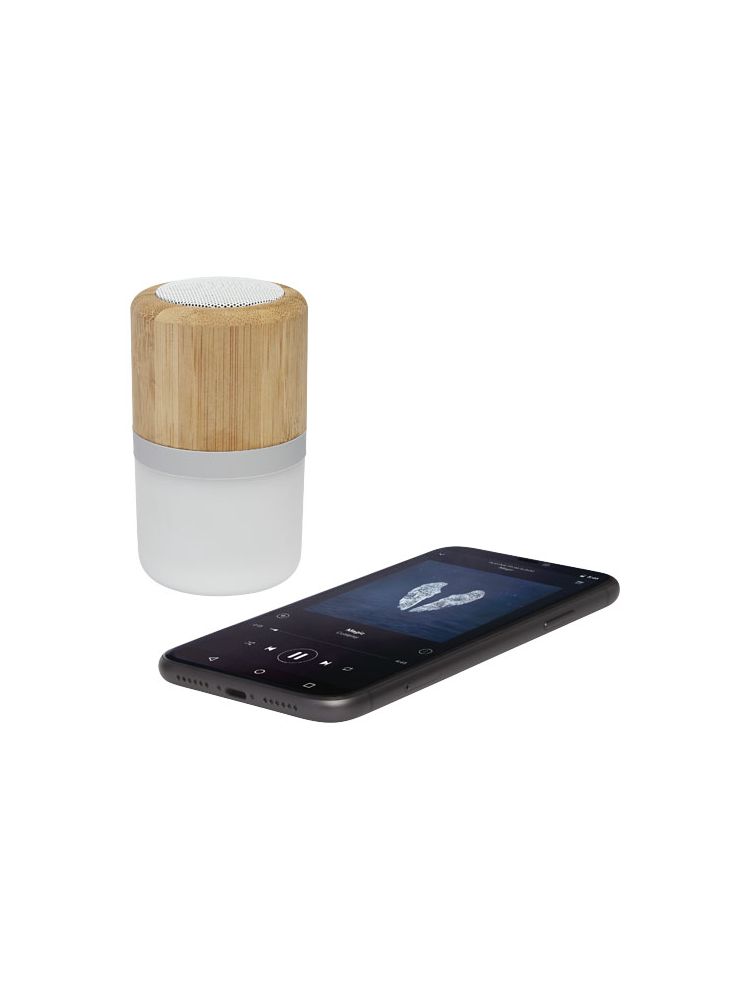 Bambusowy głośnik Bluetooth® o pojemności 350 mAh z podświetleniem to mały głośnik oferujący doskonałą jakość dźwięku w połączeniu z podświetleniem, które włącza się podczas odtwarzania muzyki. Zapewnia do 2 godzin użytkowania przy maksymalnej głośności. Połączenie Bluetooth® w wersji 5.0 o zasięgu do 10 metrów. W zestawie upominkowe Avenue i kabel do ładowania Micro-USB.