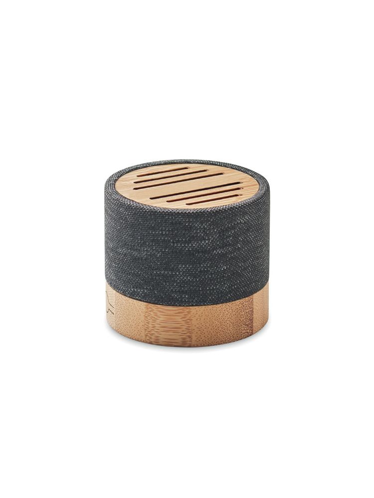 Głośnik bezprzewodowy 5.0 z RPET z bambusowym elementem. Sygnalizacja LED. 1 Akumulator Li-ION 300 mAh. Zawiera port kart SD oraz kabel AUX/USB. Wyjście: 3W, 3 Ohm i 5V. Czas odtwarzania ok. 3h. Bambus jest produktem naturalnym, dlatego mogą wystąpić nieznaczne różnice w kolorze, wzorze i rozmiarze.