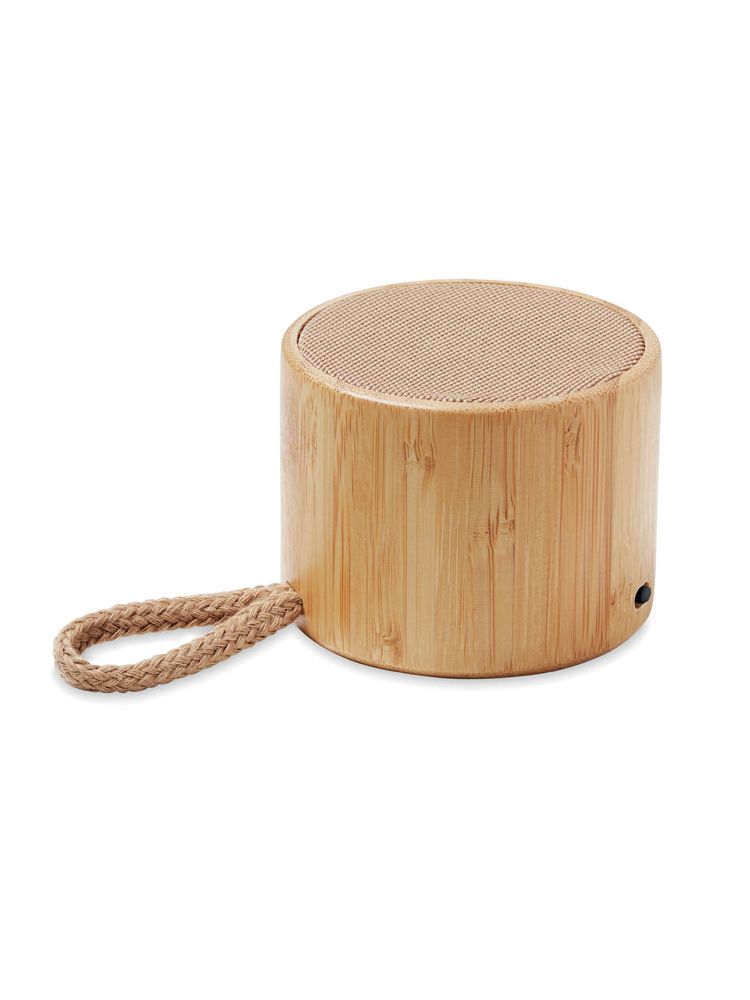 Głośnik bezprzew. 5.1 z ABS, bambusowa obudowa, bawełna, pętelką do zawieszenia. Lampka LED, 1 Akumulator Li-POL 300 mAh, port kart SD, kabel AUX/USB. Wyjście: 3W, 3Ohm i 5V. Czas odtwarzania ok. 3h. Bambus jest produktem naturalnym, dlatego mogą wystąpić nieznaczne różnice w kolorze, wzorze i rozmiarze.