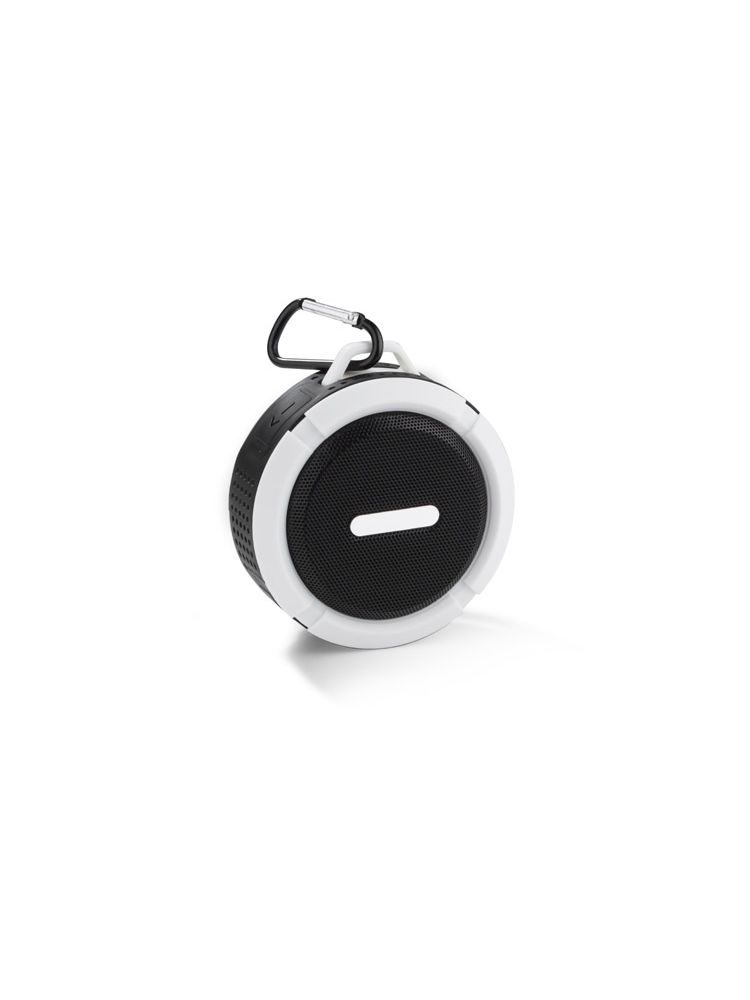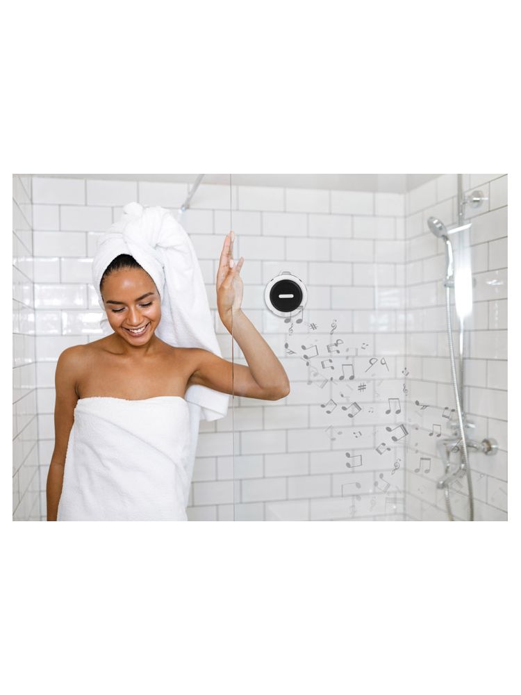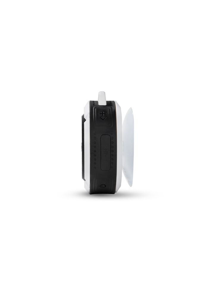 Mały głośnik z przyssawką posiadający klasę wodoszczelności IPX4, czyli całkowitą ochronę przed spryskiwaniem i zachlapaniem wodą z różnych kierunków z natężeniem do 10 litrów na minutę. Świetnie nadaje się do użytku turystycznego i na co dzień np. przy lekkim deszczu. Możliwość wykorzystania głośnika jako zestawu głośnomówiącego. Odtwarzanie muzyki jest możliwe za pośrednictwem bluetooth (wersja 4.2) lub karty micro SD. W zestawie kabel do ładowania z końcówką microUSB i karabińczyk. Posiada metalową płytkę przeznaczoną do wykonania znakowania. Produkt jest zgodny z odpowiednimi dyrektywami Unii Europejskiej oraz posiada znak CE. Dane techniczne: Moc wyjściowa: 3W x 1 Napięcie: 5V Stosunek S/N: ≥ 70 dB, czas pracy: 1-1,5 godziny, pojemność baterii 300mAh