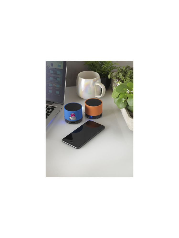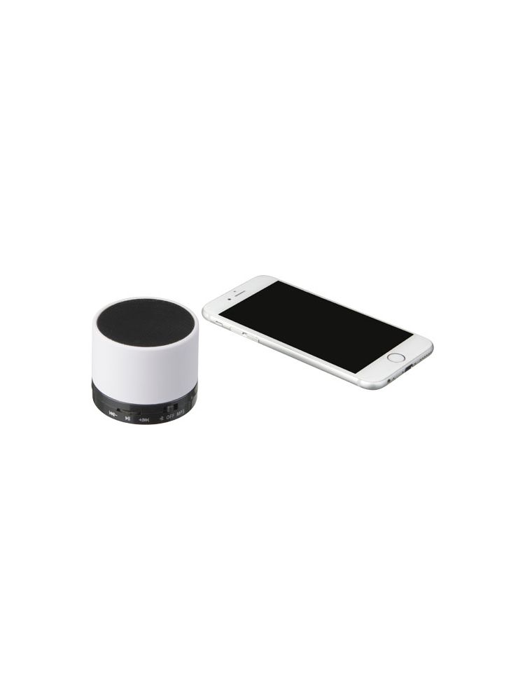 Gumowy głośnik cylindryczny. Możesz zabrać ten bezprzewodowy głośniczek Bluetooth® (zasięg 10 m) gdziekolwiek ze sobą i cieszyć się muzyką i filmami poprzez sparowanie go z kompatybilnymi urządzeniami Bluetooth® takimi jak iPhone, iPad albo urządzenia z systemem Android. Wbudowany mikrofon pozwala na połączenie konferencyjne w podróży za pośrednictwem smartfonu lub przez takie programy, jak Skype. Elegancka podgumowana obudowa. Zasilacz USB dołączony do zestawu.