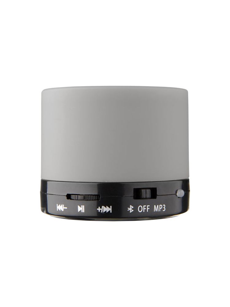 Gumowy głośnik cylindryczny. Możesz zabrać ten bezprzewodowy głośniczek Bluetooth® (zasięg 10 m) gdziekolwiek ze sobą i cieszyć się muzyką i filmami poprzez sparowanie go z kompatybilnymi urządzeniami Bluetooth® takimi jak iPhone, iPad albo urządzenia z systemem Android. Wbudowany mikrofon pozwala na połączenie konferencyjne w podróży za pośrednictwem smartfonu lub przez takie programy, jak Skype. Elegancka podgumowana obudowa. Zasilacz USB dołączony do zestawu.