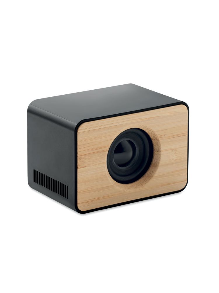 Głośnik bezprzewodowy 5.0 z przodu Bamboo, z tyłu ABS i ładowarka bezprzewodowa 10W. Podłącz urządzenie do komputera, umieść smartfon na powierzchni ładującej, aby się naładował. 1 Akumulator Li-Ion 1800 mAh. Dane wyjściowe: 3W, 4 Ohm. Czas odtwarzania ok. 2h. Bambus jest produktem naturalnym, dlatego mogą wystąpić nieznaczne różnice w kolorze, wzorze i rozmiarze.
