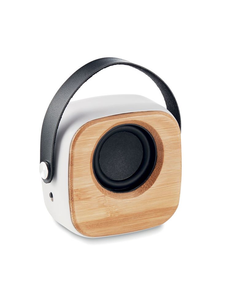 Głośnik bezprzewodowy 5.0 z ABS z bambusowym przodem i paskiem z PU. 1 akumulator litowo-jonowy 500 mAh. Dane wyjściowe: 3 W i 4 Ohm. Czas odtwarzania ok. 4 godziny. Bambus jest produktem naturalnym, dlatego mogą wystąpić nieznaczne różnice w kolorze, wzorze i rozmiarze.