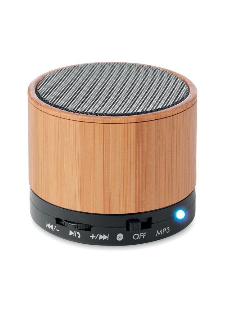 Głośnik bezprzewodowy 4.2 z ABS, z bambusową obudową i wskaźnikiem LED. Akumulator litowy 450mAh w zestawie. Port karty SD i kabel AUX/USB. Funkcja głośnomówiąca. Dane wyjściowe: 3 W, 3 Ohm i 5V. Czas odtwarzania ok. 3h. Bambus jest produktem naturalnym, dlatego mogą wystąpić nieznaczne różnice w kolorze, wzorze i rozmiarze.