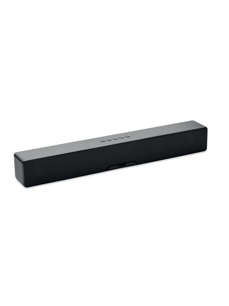 Bezprzewodowy głośnik soundbar 5.0 z tworzywa ABS z funkcją zmiany nastroju i podstawką pod telefon. W zestawie akumulator Li-ION o pojemności 2000 mAh. Dane wyjściowe:5W. Czas odtwarzania ok. 4 godz.
