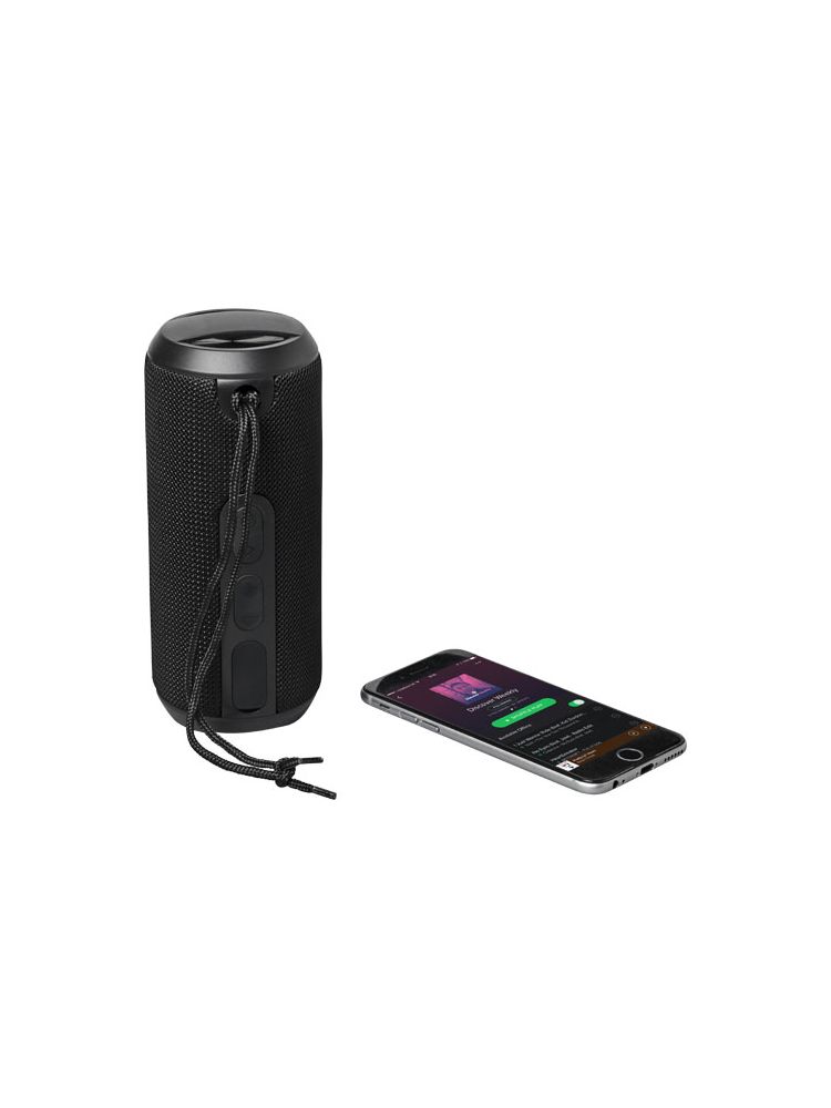 Głośnik, który pozwala cieszyć się ulubioną muzyką wszędzie! Głośnik Rugged z Bluetooth nadaje się na basen, na wycieczkę lub na imprezę na wolnym powietrze. Dzięki mocy 10 watów (2 × 5W) i cyfrowym procesorze dźwięku głośnik wypełni każdą przestrzeń doskonałej jakości muzyką. Solidny, pokryty tkaniną głośnik Rugged z Bluetooth® ma kategorię wodoodporności IPX6. Oznacza to, że może stać na zewnątrz w czasie ulewy lub wpaść do wody bez szkody dla urządzenia. W zestawie kabel do ładowania z wtyczką micro USB oraz sznurek do przenoszenia. Zasięg Bluetooth: 10 metrów. Akumulator wytrzymuje do 4 godzin odtwarzania muzyki na maksymalnej głośności. Czas ładowania 2,5 godziny. Głośnik zawiera wbudowany mikrofon i pilota do sterowania muzyką, umożliwiając obsługę bez użycia rąk.
