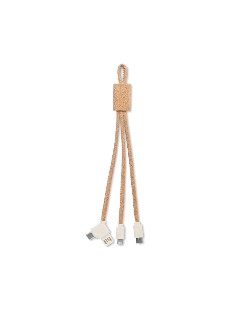 Korkowy kabel 3-w-1 do ładowania. Wejście typu A i typu C. 3 typy wyjścia. Korek jest materiałem w 100% naturalnym. Ze względu na jego strukturę i porowatość powierzchni ostateczny wygląd nadruku na każdym artykule może się różnić.