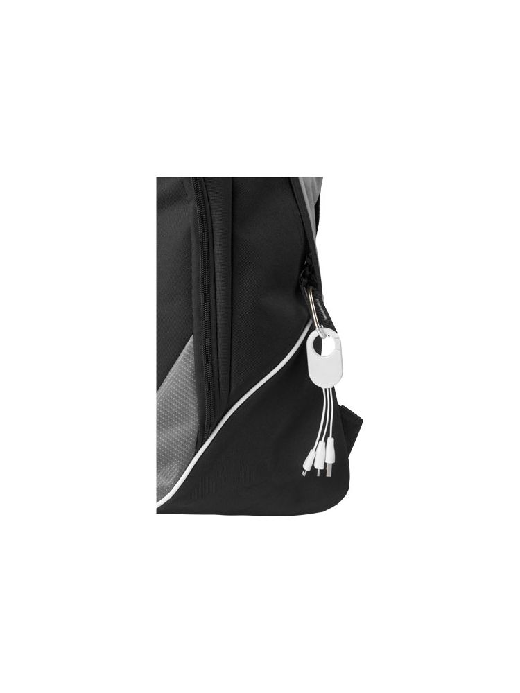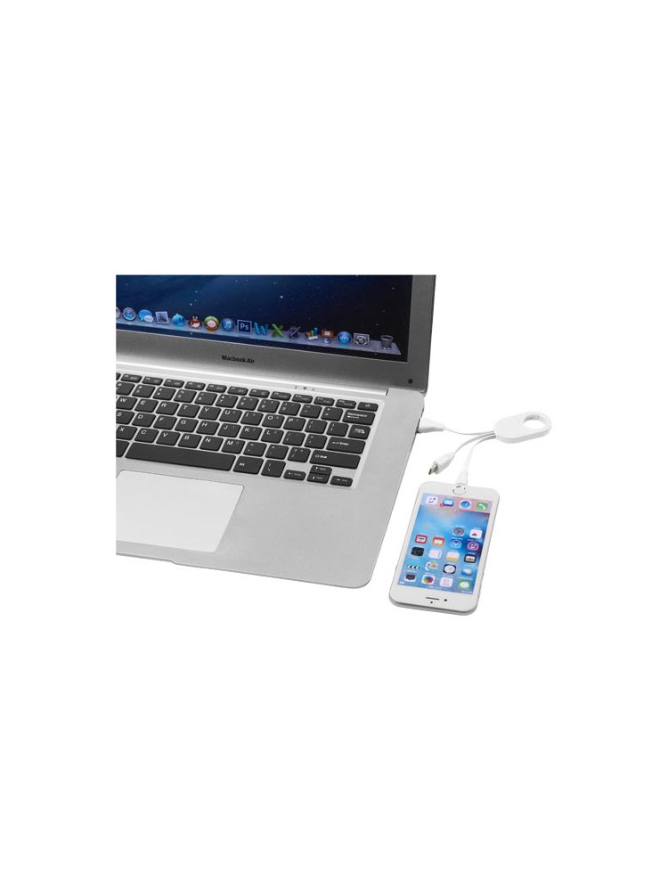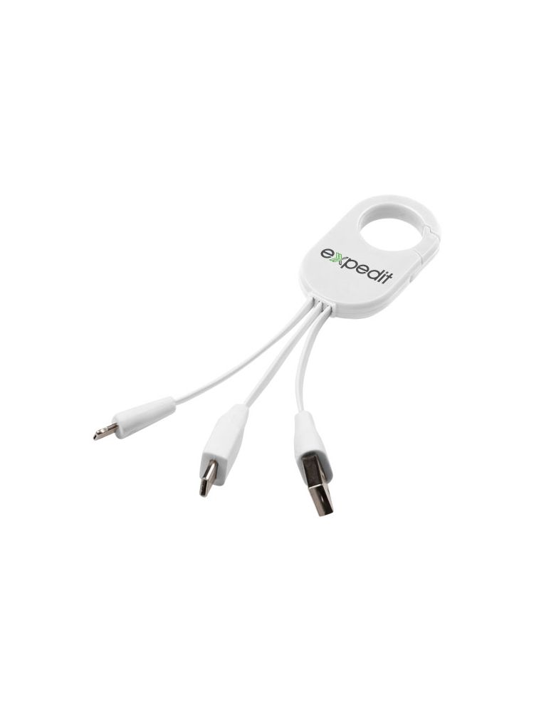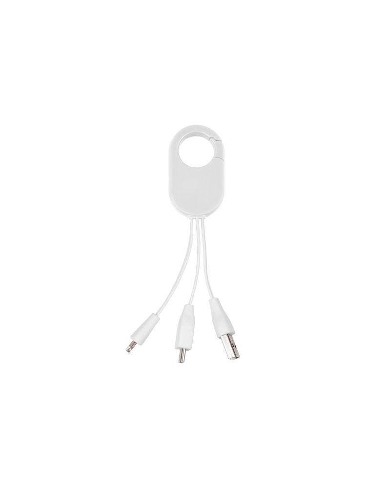 Kabel do ładowania Troop 3w1 ma końcówkę USB C oraz końcówkę 2w1 kompatybilną z urządzeniami Apple® iOS oraz Android. Karabińczyk pozwala na łatwe przyczepienie do torby.