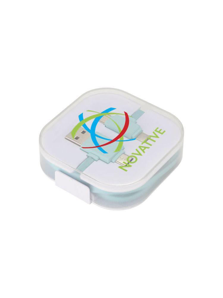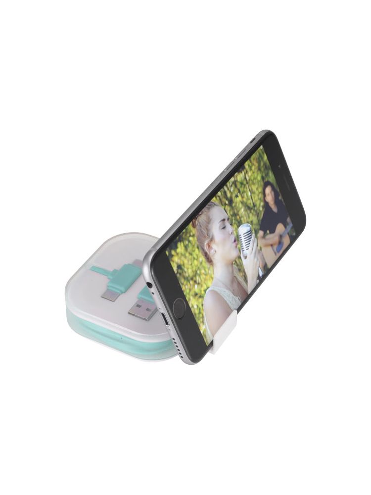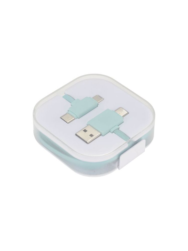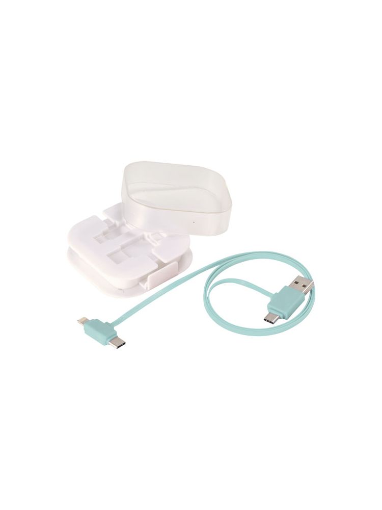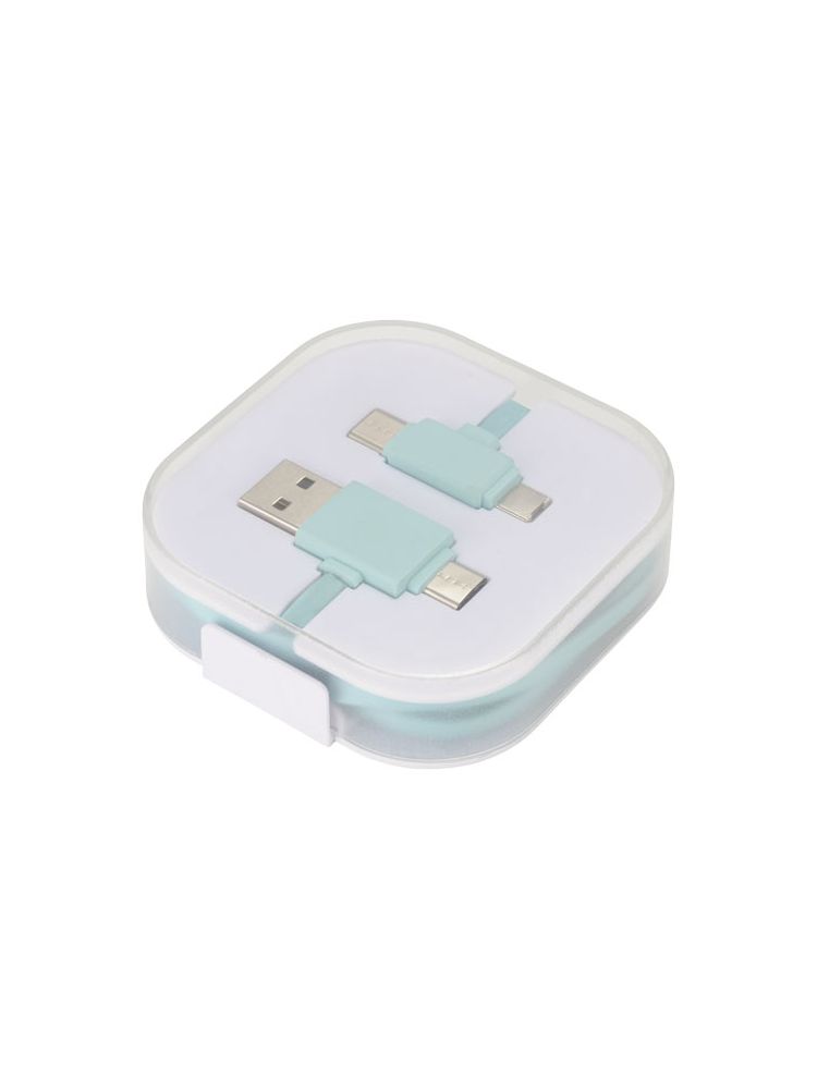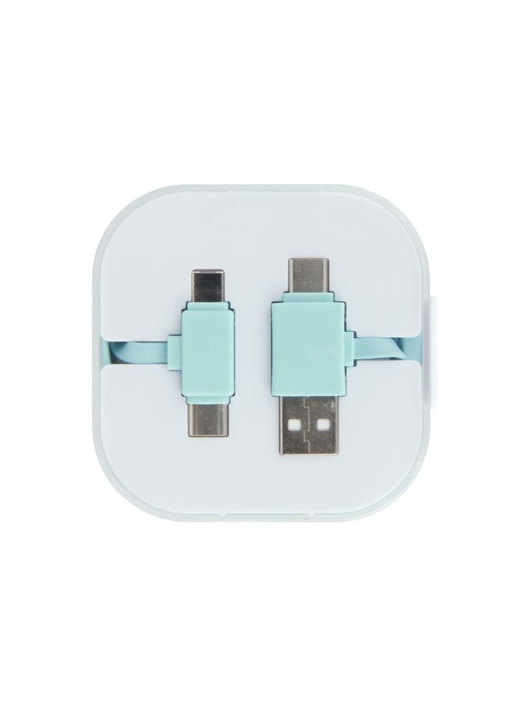 Kabel do ładowania 4w1 ma 2 końcówki USB C, 1 USB A oraz końcówkę 2w1 kompatybilną z urządzeniami Apple® iOS oraz Android. Obsługuje ładowanie i wymianę danych. Aby ładować urządzenia Apple należy włożyć w nie końcówkę gładką, zaś aby ładować urządzenia Android należy użyć końcówkę z wtykami.