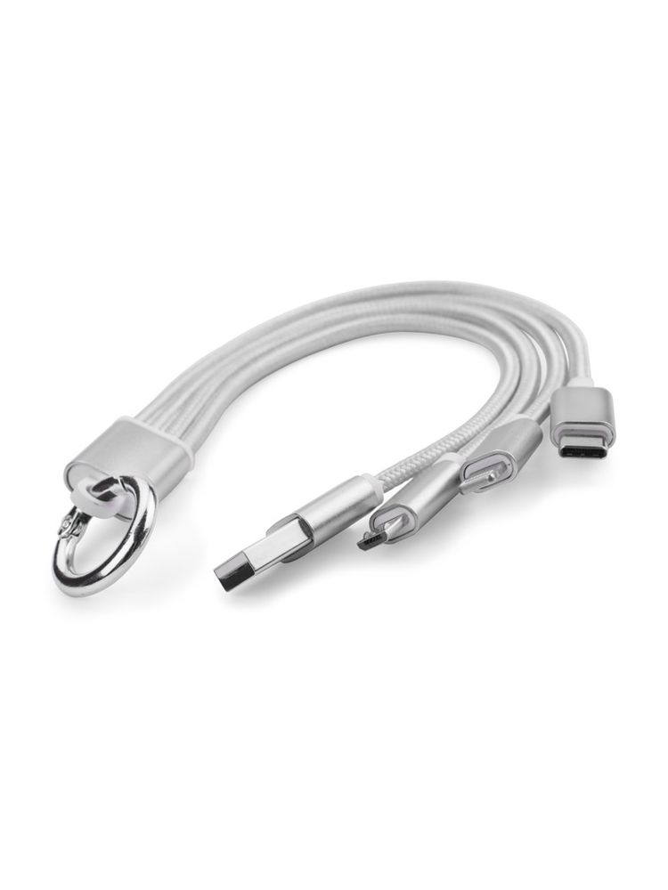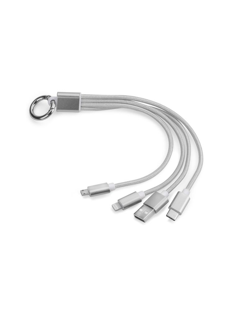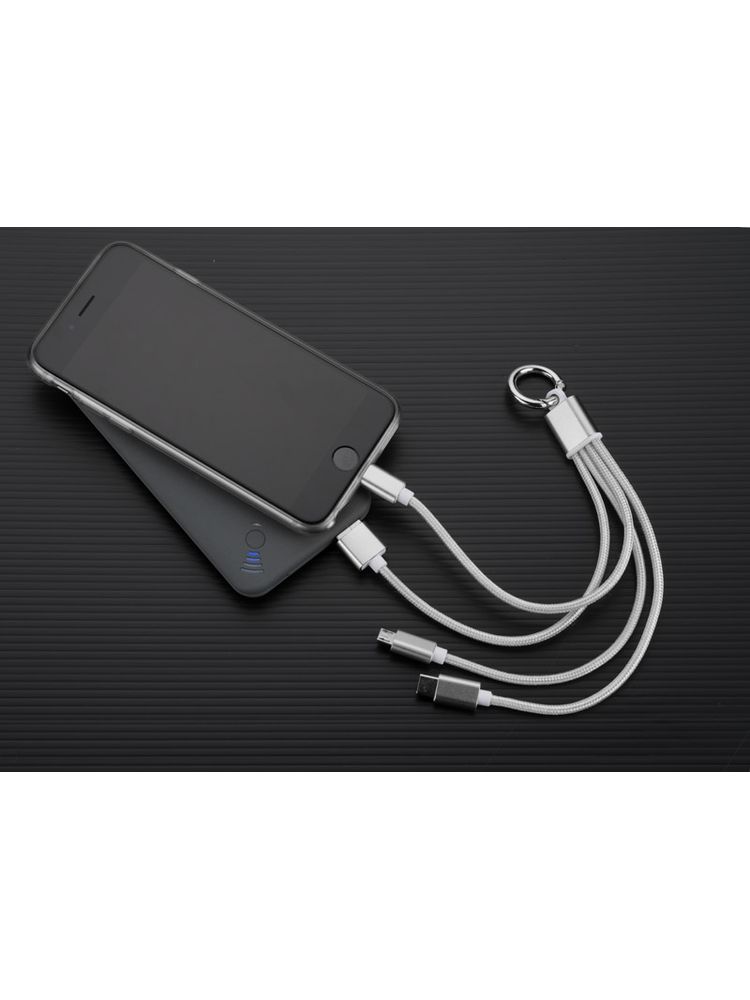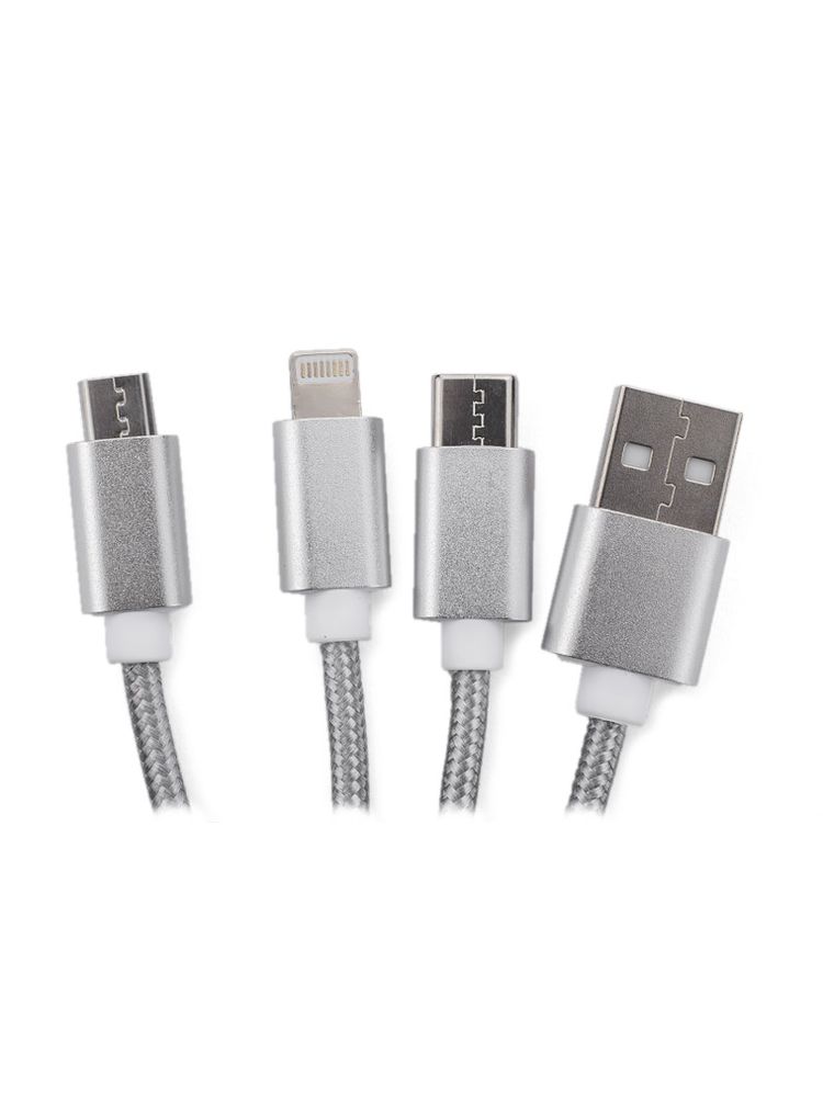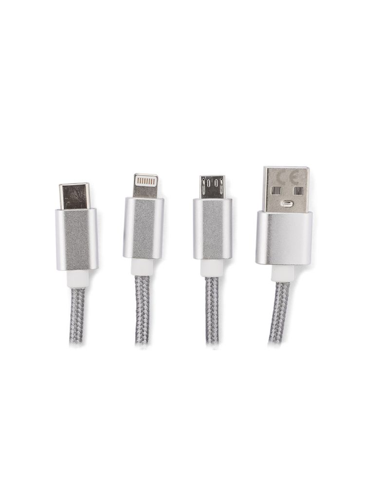 Kabel USB 3 w 1 TAUS do ładowania różnych urządzeń posiada trzy końcówki: micro USB, Lightning (iPhone) i USB typu C. Kabel jest powleczony tkaniną, a końcówki USB są wykonane z metalu. Praktyczny gadżet dla każdego użytkownika mobilnych urządzeń.